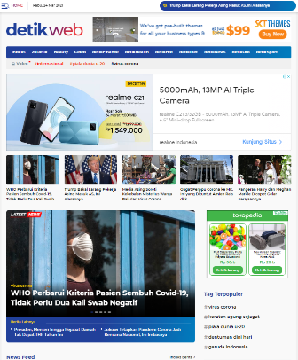 1. detikweb adalah template blogger mirip situs berita terkenal detikcom terbaru 2020 dengan tampilan halaman depan dan postingan yang diubah secara keseluruhan. Tampilan detikweb berbeda dari detikcoy yang tampilannya menyerupai detikcom sampai akhir 2019. Seperti yang kita ketahui, detikcom mengubah total tampilan web-nya mulai awal tahun 2020.